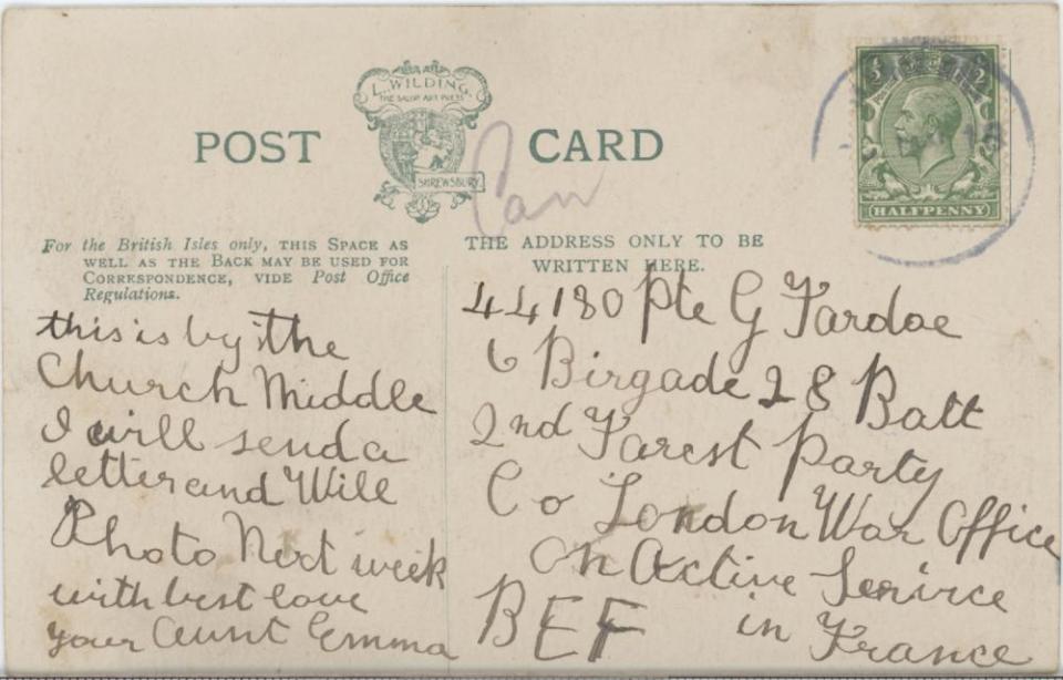 Postcard from March of 1918, back view; for transcription see letter entry of same date.