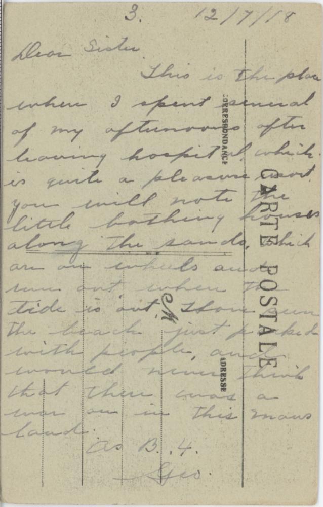 Postcard 3 of 3, July 12, 1918, back view; for transcription see letter entry of same date.