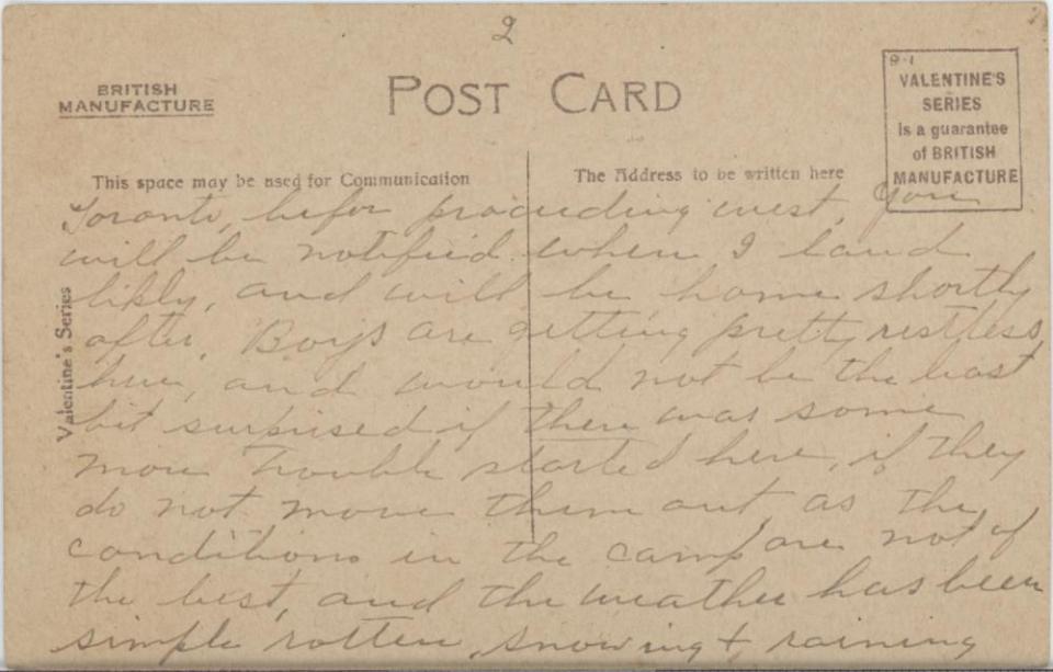 Postcard 2 of 3, May 1, 1919, back view; for transcription see letter entry of same date.