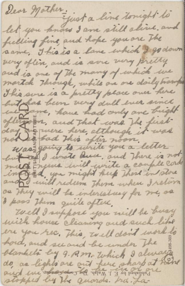Postcard 5 of 5, date unknown, back view; for transcription see letter entry (no date).