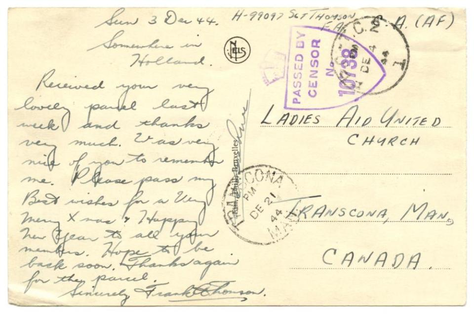 Received your very lovely parcel last week and thanks very much. Was very nice of you to remember me. Please pass my Best wishes for a very merry X mas and Happy New Year to all your members. Hope to be back soon. Thanks again for the parcel.