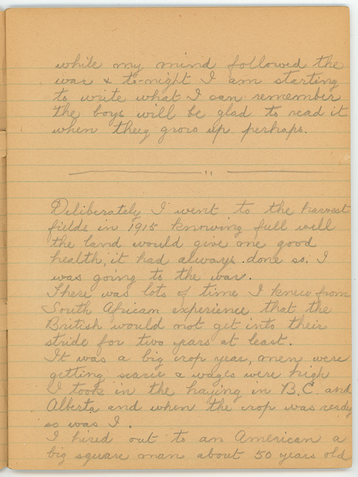 Dliberately I went to the harvest fields in 1915 knowing full well the land would give one good health, it had always done so. I was going to the war.