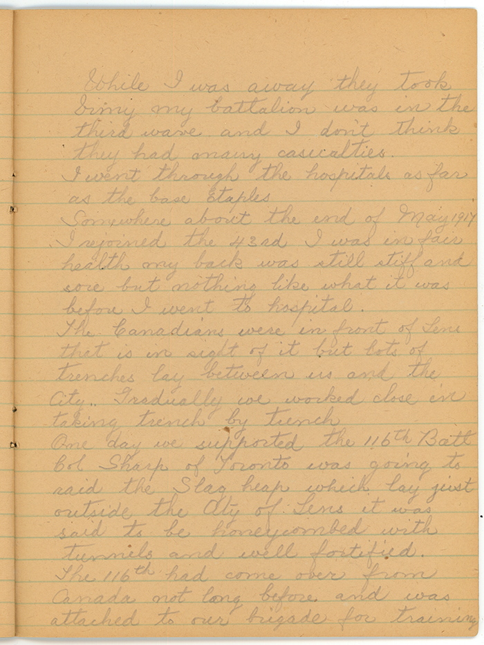 While I was away they took Vimy. My battalion was in the third wave and I don't think they had many casualties. I went through the hospitals as far as the base Etaples.